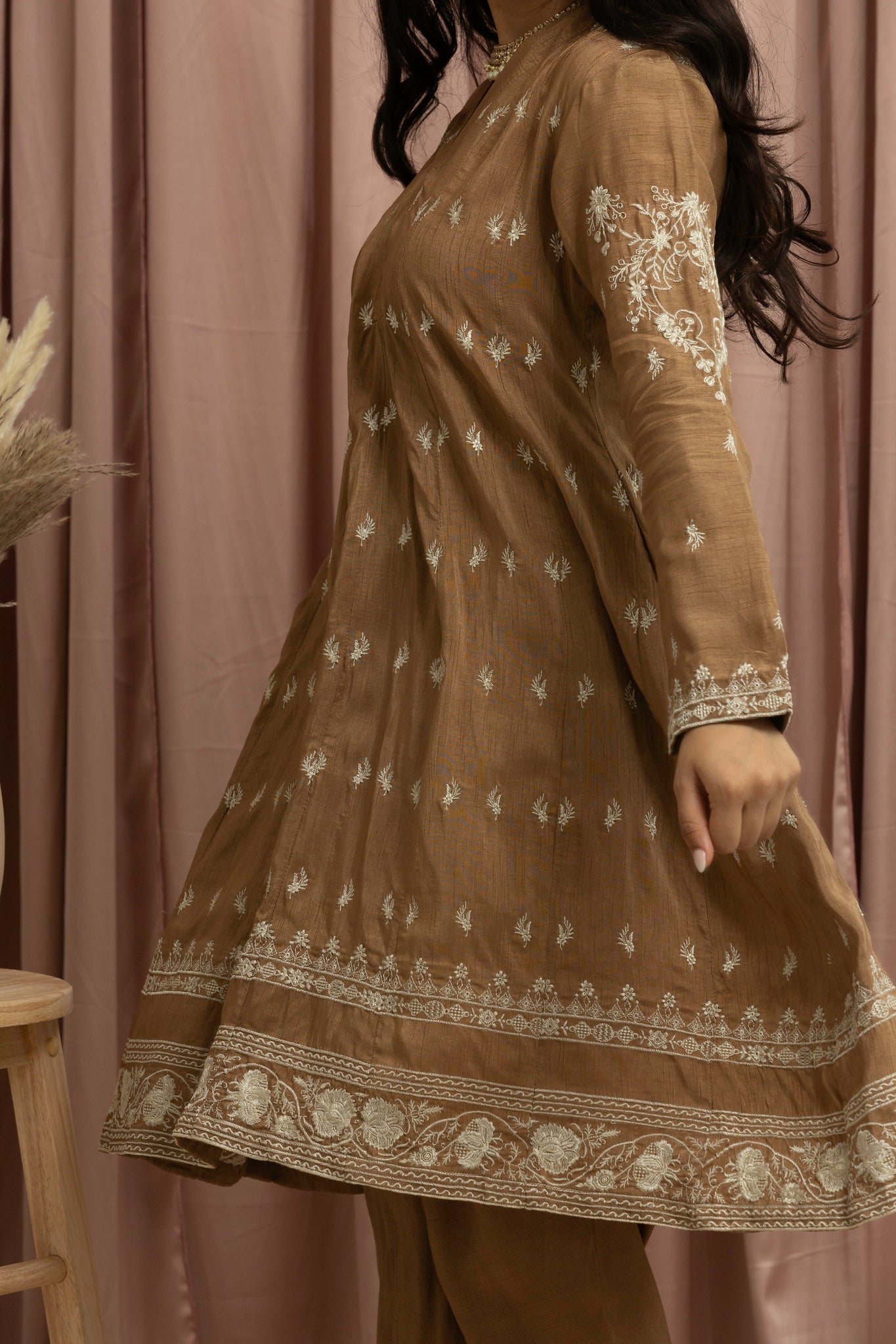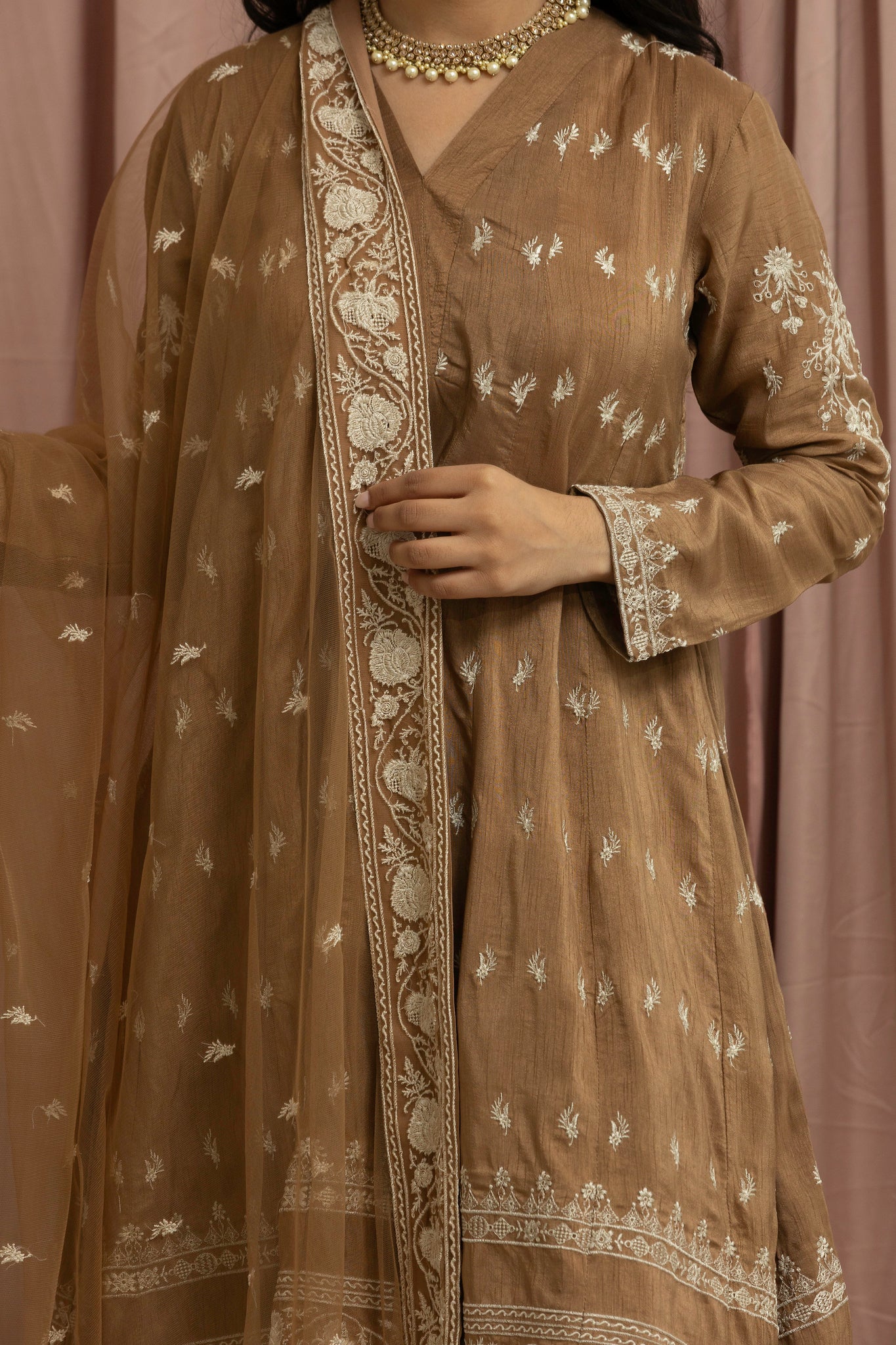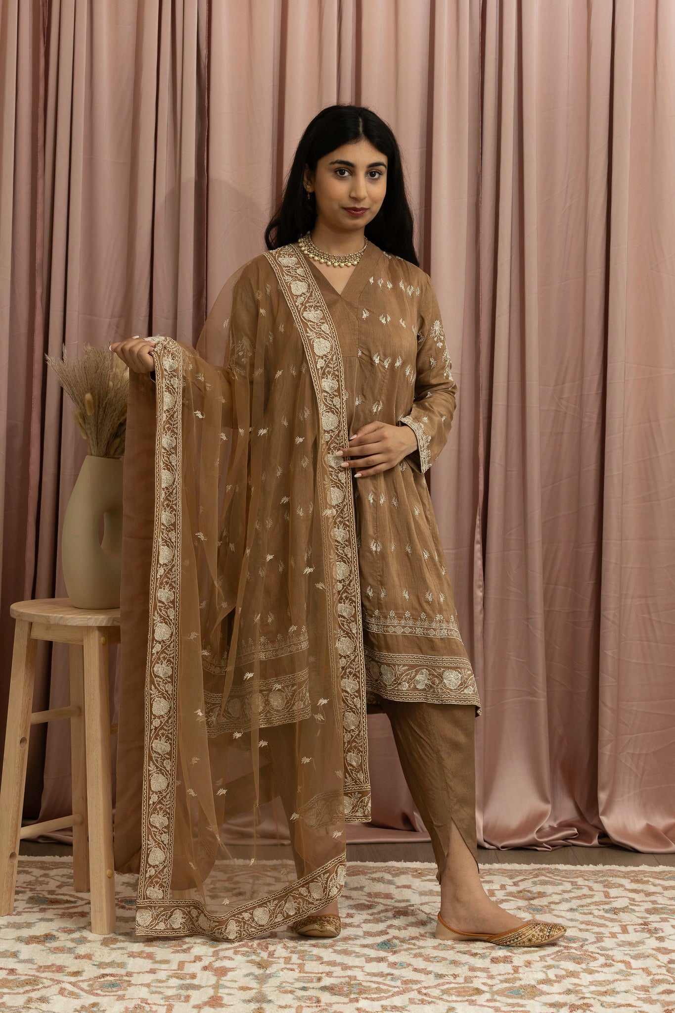 The dupatta makes itself known with delicate embroidery and miniature leaves sprawled across it. Birthed with sophistication and style, the tulips salwar lets you glide with ease. If you love dancing around and sauntering through conversations, it’s a must-have piece in your wardrobe. The beauty of it lies in its simplicity.